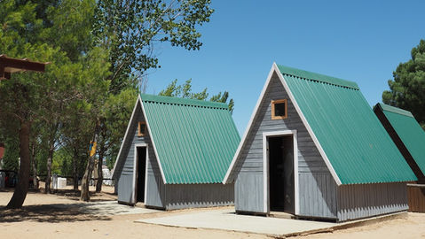 Todas nuestras cabañas están equipadas con: luz eléctrica, enchufes, colchones , funda de colchón , sábana bajera, y están dispuestas en círculo alrededor de un porche central perfecto para reuniones, charlas y juegos.